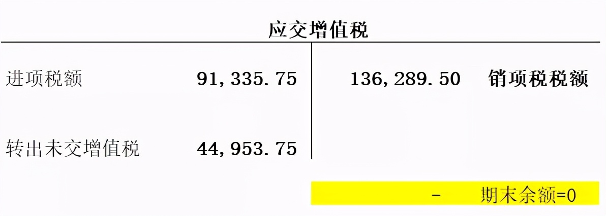小编看了一下分录,这个分录的大概意思应该是这样的。该企业当期销项税额136289.50,进项91335.75。