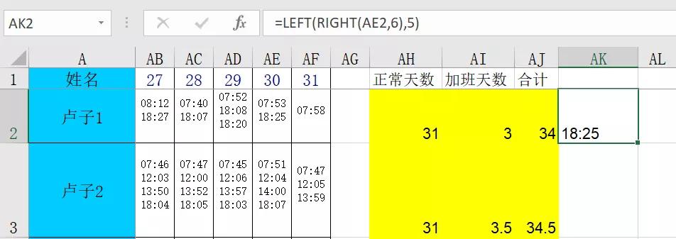 最后1位隐藏字符是什么呢?卢子放弃了猜测,再用提取左边5位的方法,这样就得到时间。