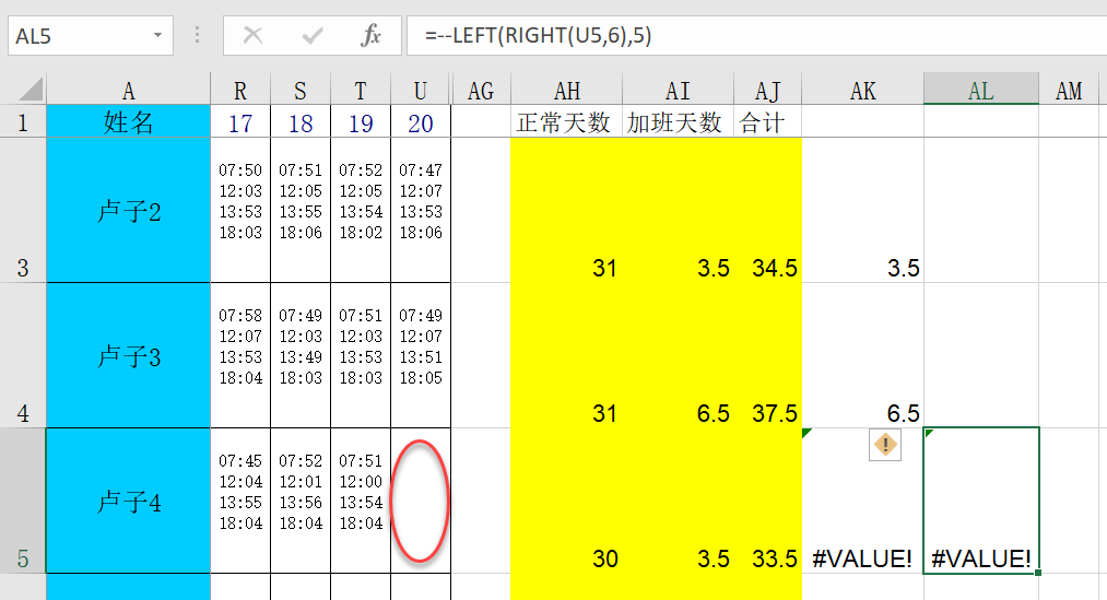 卢子找了一个没有打卡记录的单元格测试,发现问题就出在这里。