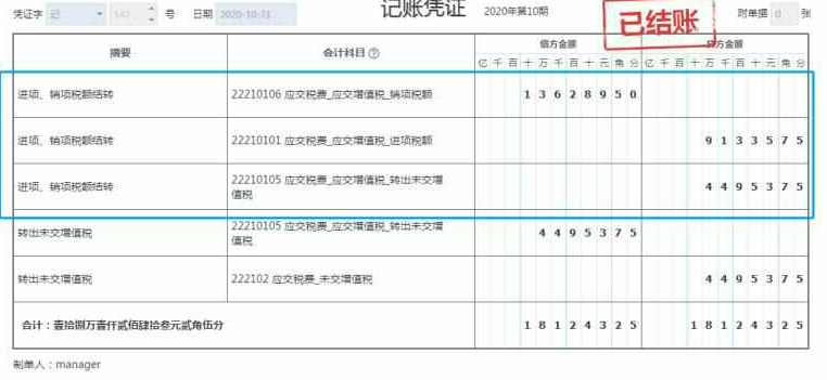 比如,假设10月的结果就是最后全年的结果,也就是留抵扣100。那么我们需要做分录