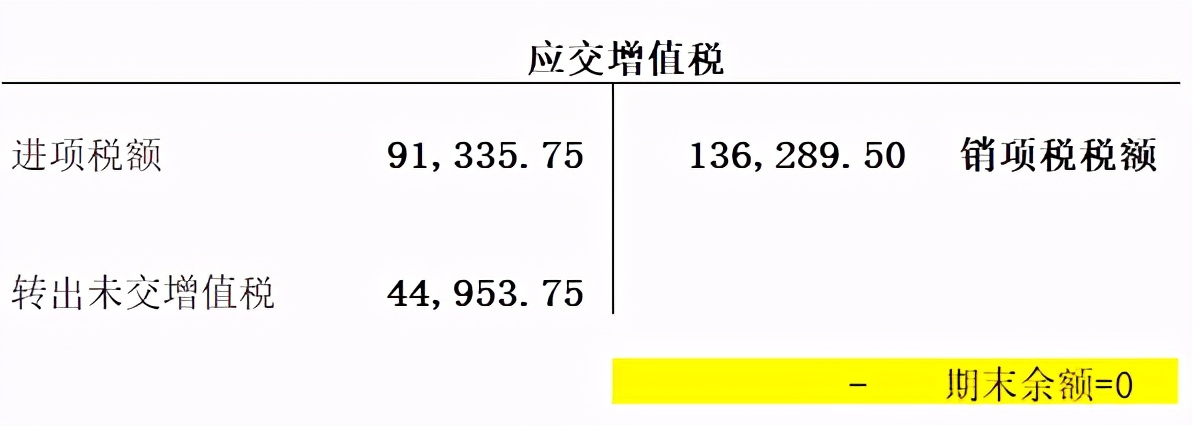 当期实现增值税44953.75,按照财会2016年22号的核算规定。