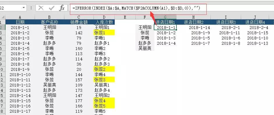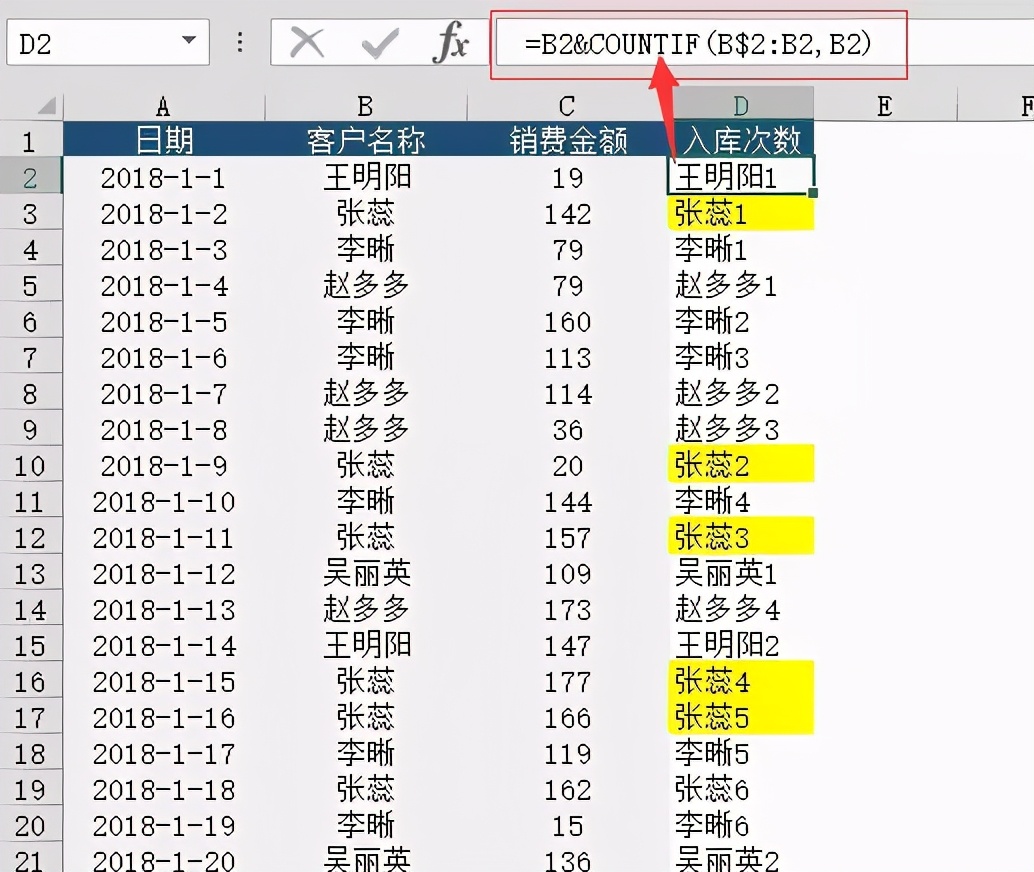 添加这个序号有什么用?当然用处大了。添加后就可以查找出每个客户的进店日期了。