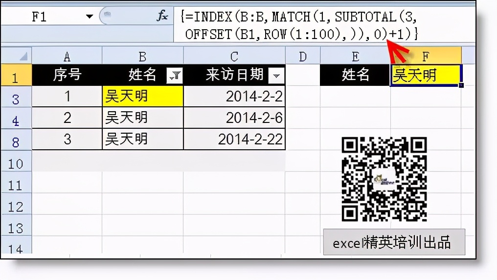 B2:(数组公式,按ctrl+shift+enter三键输入)