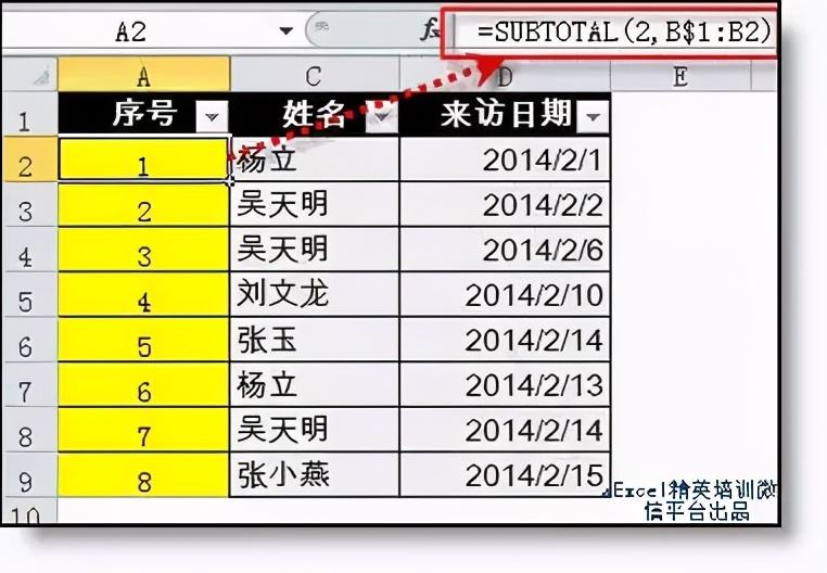 插入辅助列,输入公式 =1。加入这列是方便在序号列使用公式统计行数。