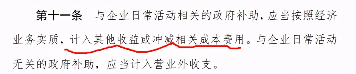 用于弥补已经发生的成本或者费用,直接计入当期损益或者冲减相关成本,计入当期损益时,按照准则十一条规定。