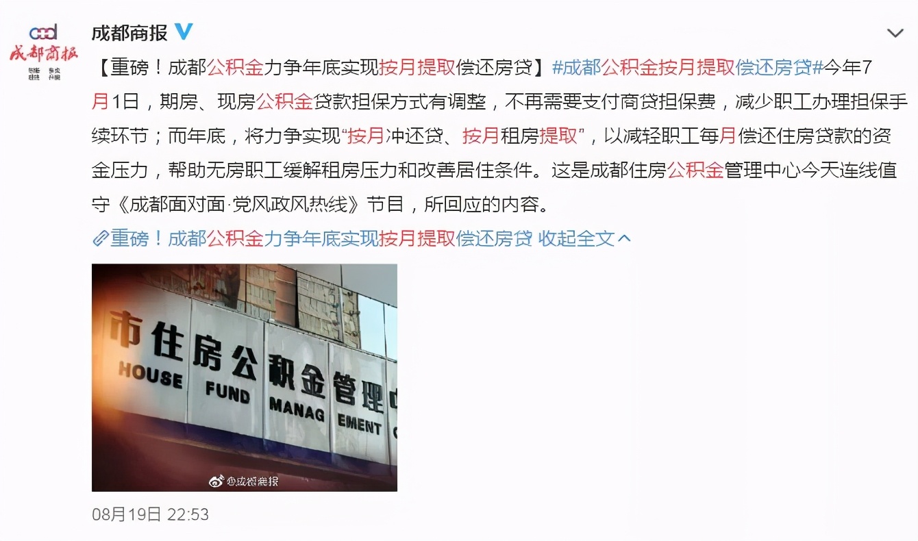 除北京外,多地也有最新的政策,例如成都就给公积金带去了重大利好!