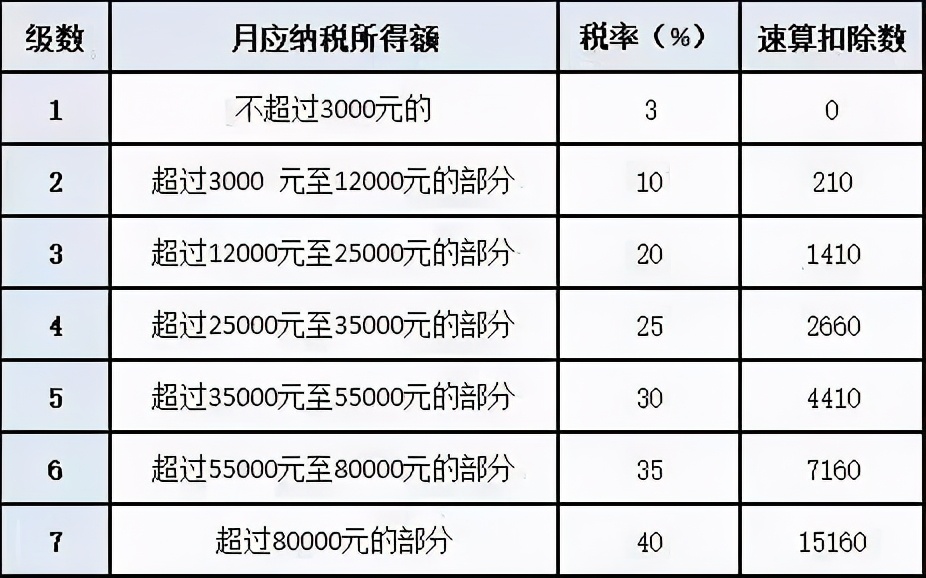 确定适用税率和速算扣除数:48000÷12=4000(元)