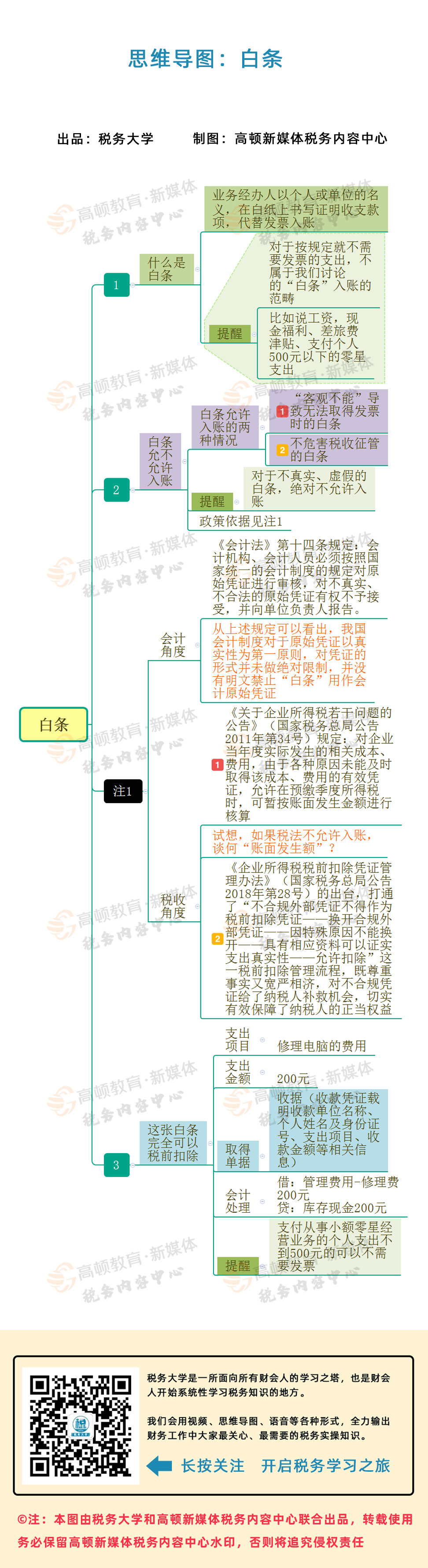 白条支出思维导图,你都清楚了嘛?还没清楚的赶快收藏哦,还有什么问题也可在留言区和小编多多交流~发票审核与费用归属可以折射公司的税控风险意识,而费用的动向则可以透视公司的运作效能。梳理企业经营中常见各种费用,在此小编再给大家推荐《企业常见税务盘点与税务处理汇总》,帮助大家分析各种费用实际操作方法,掌握不同费用的处理要点和风险规避。