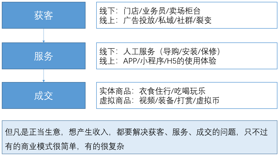 MVP要证明自己有产生收入。产生收入,就至少需要获客、服务、成交三个关键环节。在这三个环节的工作中,会产生各类成本。因此拆解MVP,核心是拆解获客、服务、成交流程。