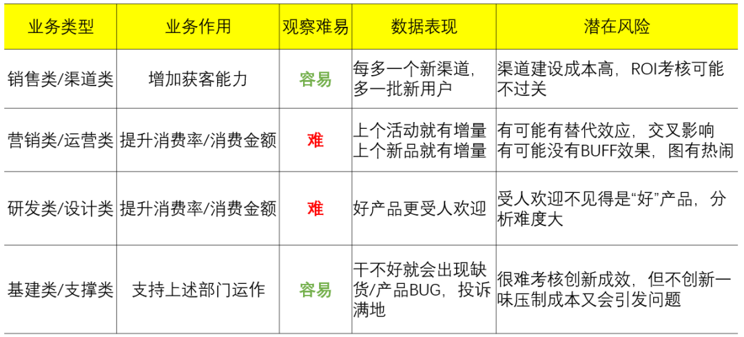 当然,并非所有的业务都像黄焖鸡这么简单,有些可能涉及复杂的部门配合。因此可以用以下分类,来区分业务特点(如下图)